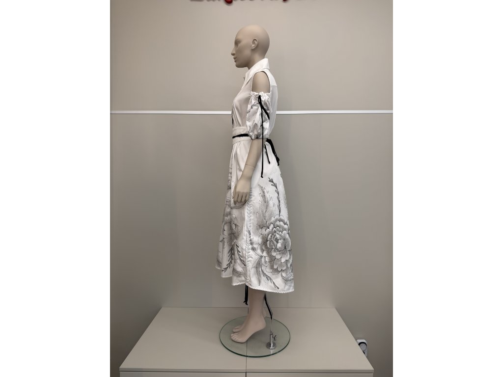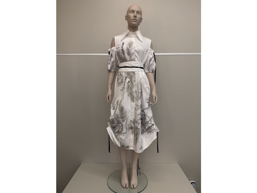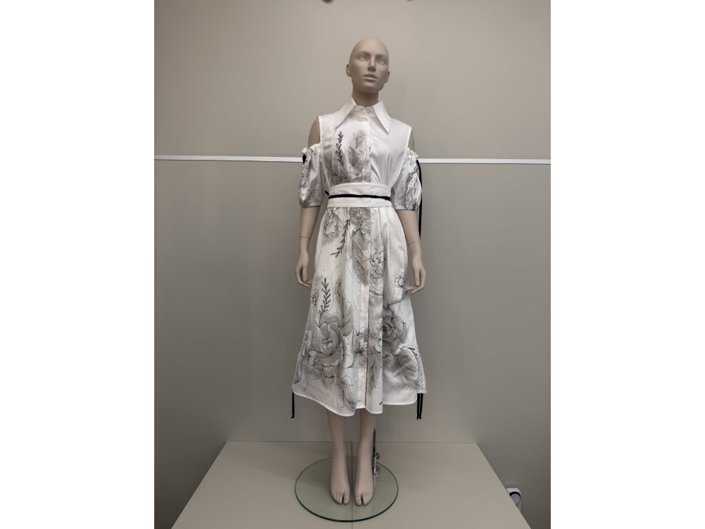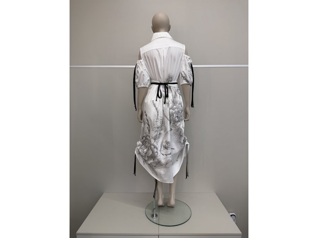 Biele košeľové šaty s kvetinovou maľbou