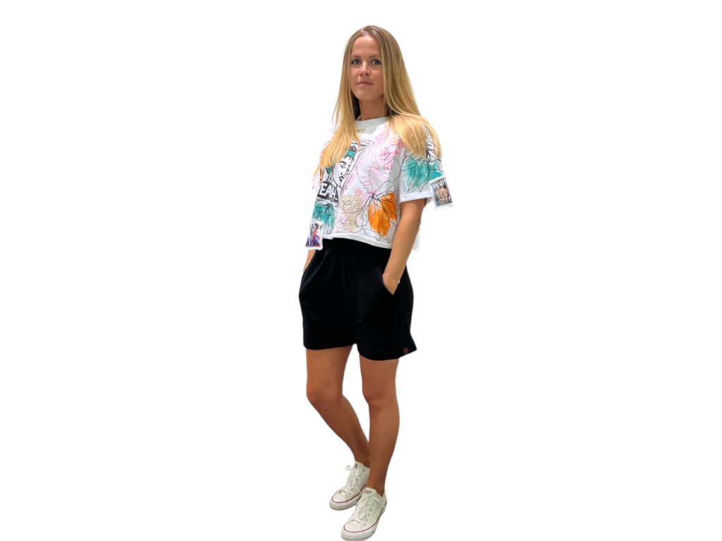 Jedinečný croptopík z našej kolekcie leto jeseň. 100% bablna, krátky rukáv a ručná maľba. Netreba sa báť a prať na 30stupňov v práčke. Sedí perfektne od veľkosti 34 do 42 :)