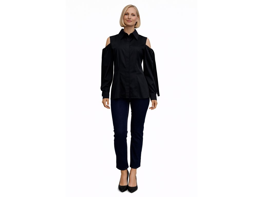 Dámska bavlnená košeľa s odhaleným ramenom čierna