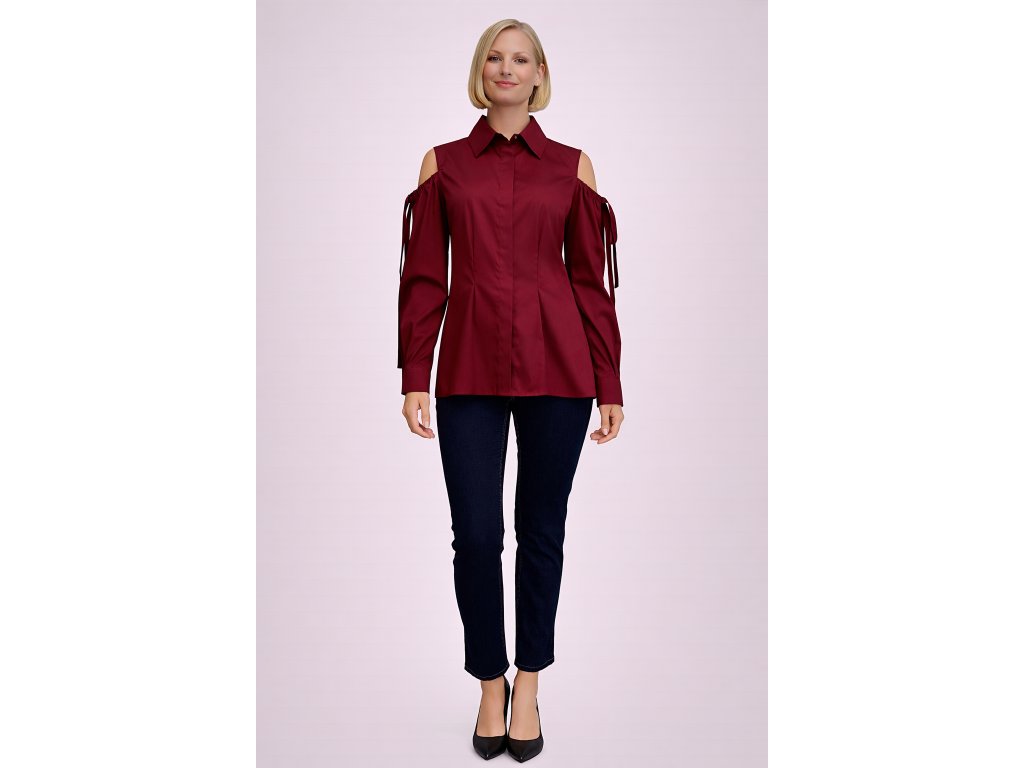 Dámska bavlnená košeľa s odhaleným ramenom burgundy