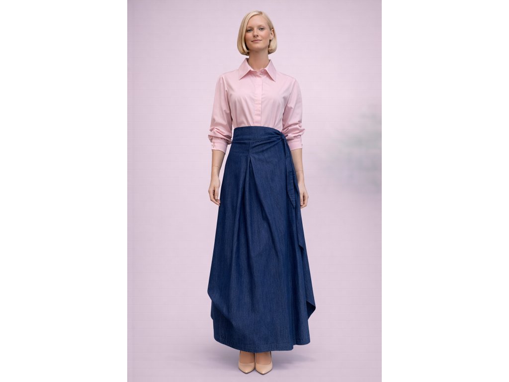 Minimalistická, ale mimoriadne štýlová zavinovacia sukňa z kvalitného tenšieho denimu. Jej vrstvený strih dodáva eleganciu, krásne pracuje s pohybom a zároveň lichotí každej postave. Vďaka univerzálnemu dizajnu sa ľahko kombinuje s akýmkoľvek topom – od košele až po jednoduché tričko.