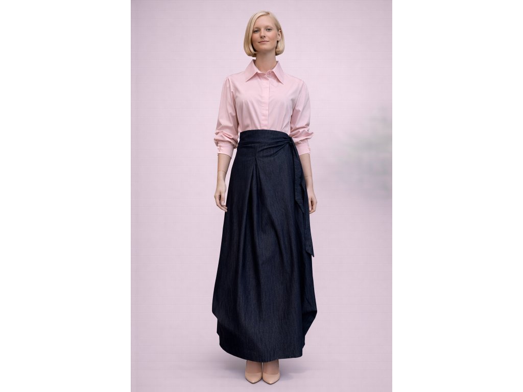 Minimalistická, ale mimoriadne štýlová zavinovacia sukňa z kvalitného tenšieho denimu. Jej vrstvený strih dodáva eleganciu, krásne pracuje s pohybom a zároveň lichotí každej postave. Vďaka univerzálnemu dizajnu sa ľahko kombinuje s akýmkoľvek topom – od košele až po jednoduché tričko.