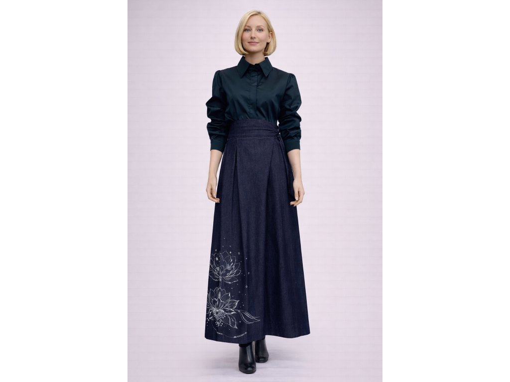 Elegantné ako sukňa, pohodlné ako nohavice. Zavinovací strih, praktické vrecká a príjemný tenší denim – krásne sedia aj väčším veľkostiam. Nadčasový a originálny kúsok pre každý deň ✨ručne maľované ❤️