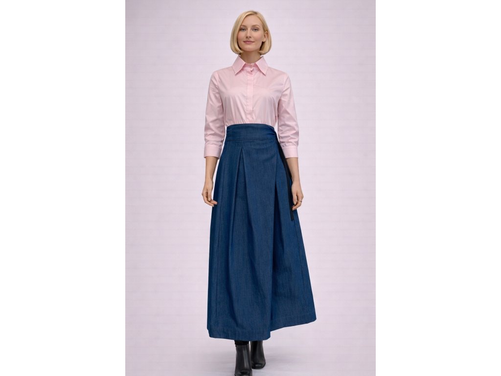 Objavte výnimočný kúsok, ktorý spája eleganciu sukne a pohodlie nohavíc. Naše samurajské zavinovacie nohavice sú ušité z príjemného tenšieho denimu – skvelé na celodenné nosenie aj počas teplejších dní.