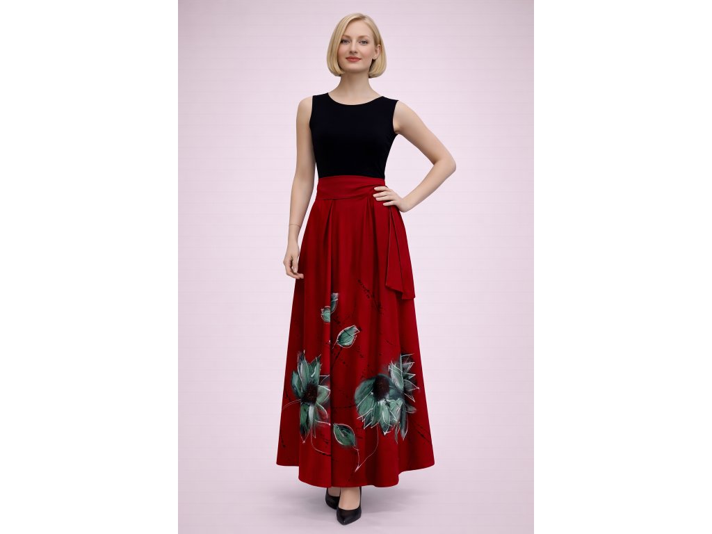Dlhá dámska zavinovacia sukňa červená maľovaná