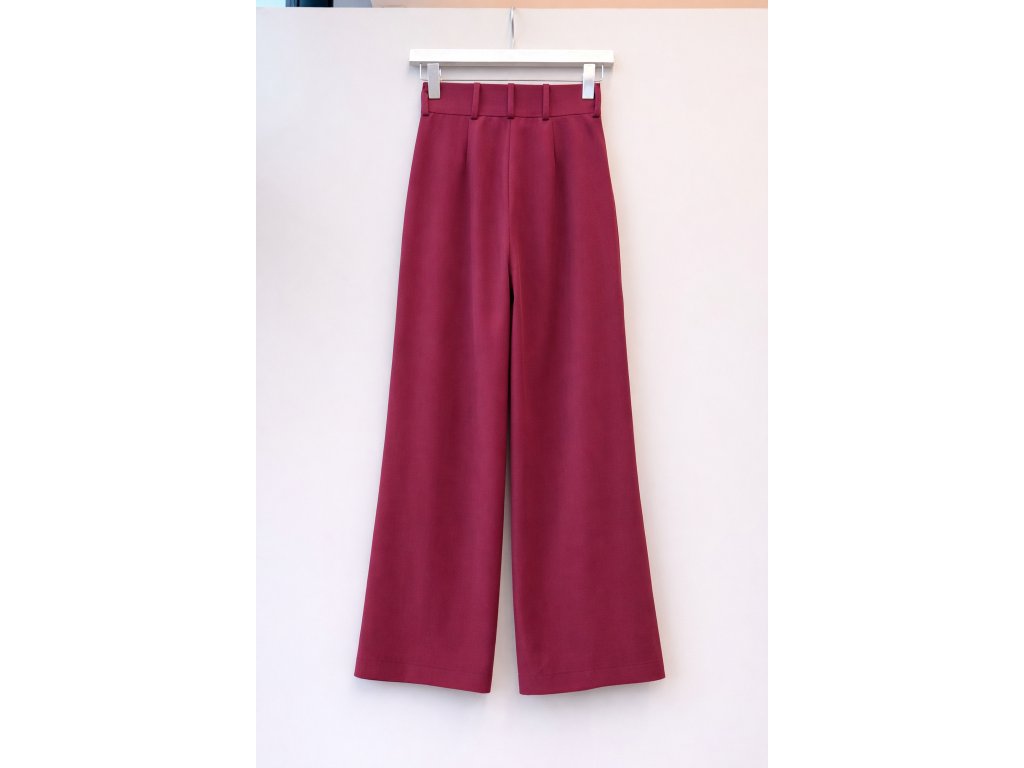 Elegantné široké nohavice v malinovej farbe