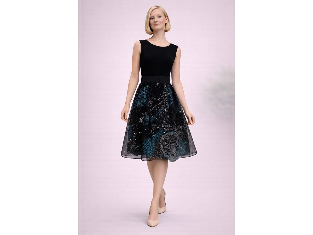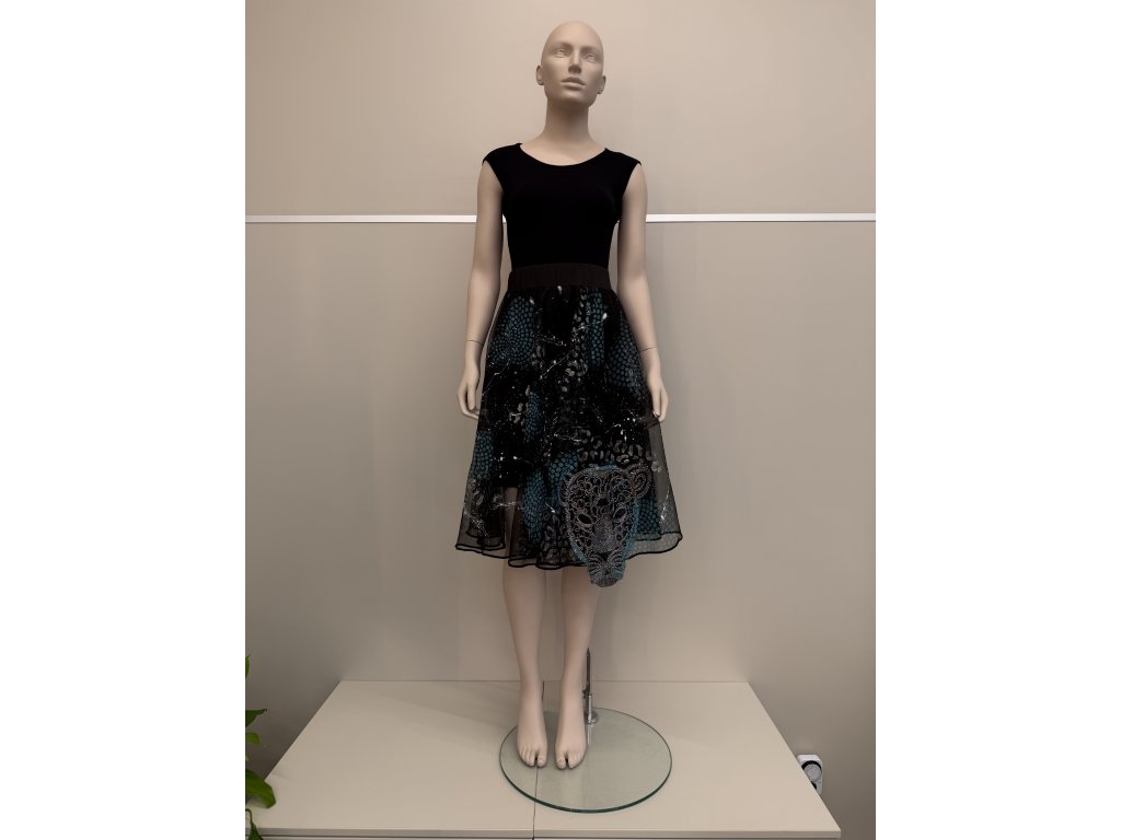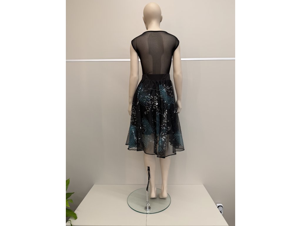 Jemná tylová sukňa s ručnou maľbou, doplnená výraznou striebornou výšivkou motívu leoparda. Má funkčnú podšívku a elastický pás s jemnou gumičkou, ktorý sa pohodlne prispôsobí postave.